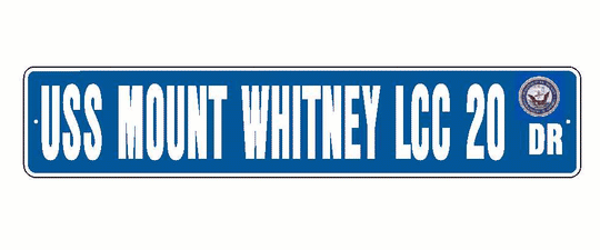 USS MOUNT WHITNEY LCC 20 Aluminum Street Sign Blue / White 6" x 30" Military USN SS001