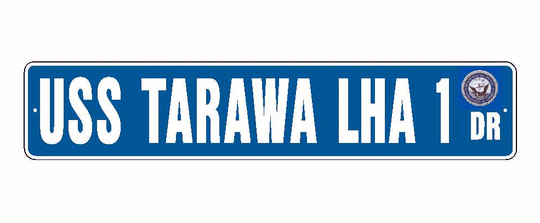 USS TARAWA LHA 1 Aluminum Street Sign Blue / White 6" x 30" Military USN SS001