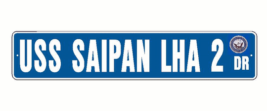 USS SAIPAN LHA 2 Aluminum Street Sign Blue / White 6" x 30" Military USN SS001