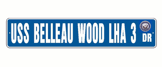 USS BELLEAU WOOD LHA 3 Aluminum Street Sign Blue / White 6" x 30" Military USN SS001