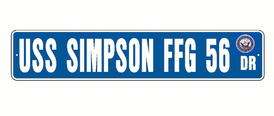 USS SIMPSON FFG 56 Aluminum Street Sign Blue / White 6" x 30" Military USN SS001