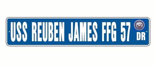 USS REUBEN JAMES FFG 57 Aluminum Street Sign Blue / White 6" x 30" Military USN SS001