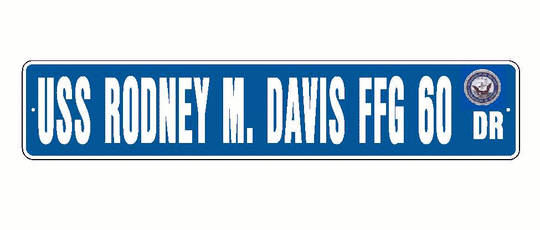 USS RODNEY M DAVIS FFG 60 Aluminum Street Sign Blue / White 6" x 30" Military USN SS001
