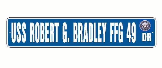 USS ROBERT G BRADLEY FFG 49 Aluminum Street Sign Blue / White 6" x 30" Military USN SS001