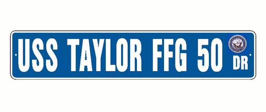 USS TAYLOR FFG 50 Aluminum Street Sign Blue / White 6" x 30" Military USN SS001