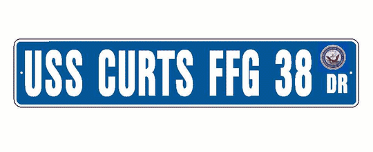 USS CURTS FFG 38 Aluminum Street Sign Blue / White 6" x 30" Military USN SS001