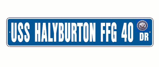USS HALYBURTON FFG 40 Aluminum Street Sign Blue / White 6" x 30" Military USN SS001