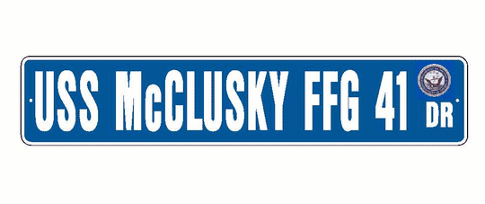 USS McCLUSKY FFG 41 Aluminum Street Sign Blue / White 6" x 30" Military USN SS001