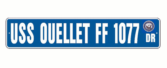 USS OUELLET FF 1077 Aluminum Street Sign Blue / White 6" x 30" Military USN SS001