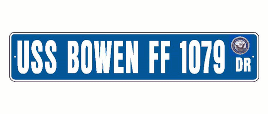 USS BOWN FF 1079 Aluminum Street Sign Blue / White 6" x 30" Military USN SS001