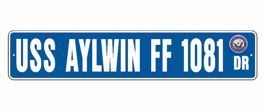 USS AYLWIN FF 1081 Aluminum Street Sign Blue / White 6" x 30" Military USN SS001