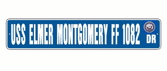 USS ELMER MONTGOMERY FF 1082 Aluminum Street Sign Blue / White 6" x 30" Military USN SS001