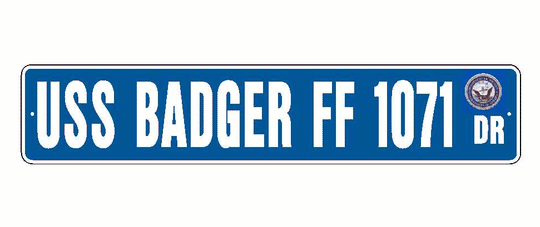 USS BADGER FF 1071 Aluminum Street Sign Blue / White 6" x 30" Military USN SS001