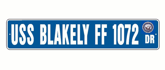 USS BLAKELY FF 1072 Aluminum Street Sign Blue / White 6" x 30" Military USN SS001