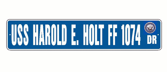 USS HAROLD E HOLT FF 1074 Aluminum Street Sign Blue / White 6" x 30" Military USN SS001