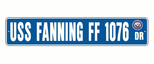USS FANNING FF 1076 Aluminum Street Sign Blue / White 6" x 30" Military USN SS001