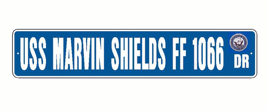 USS MARVIN SHIELDS FF 1066 Aluminum Street Sign Blue / White 6" x 30" Military USN SS001