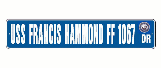 USS FRANCIS HAMMOND FF 1067 Aluminum Street Sign Blue / White 6" x 30" Military USN SS001