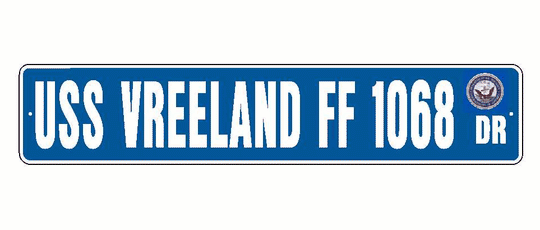 USS VREELAND FF 1068 Aluminum Street Sign Blue / White 6" x 30" Military USN SS001