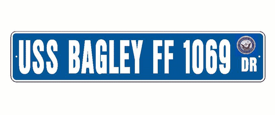 USS BAGLEY FF 1069 Aluminum Street Sign Blue / White 6" x 30" Military USN SS001