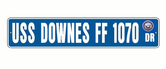 USS DOWNES FF 1070 Aluminum Street Sign Blue / White 6" x 30" Military USN SS001