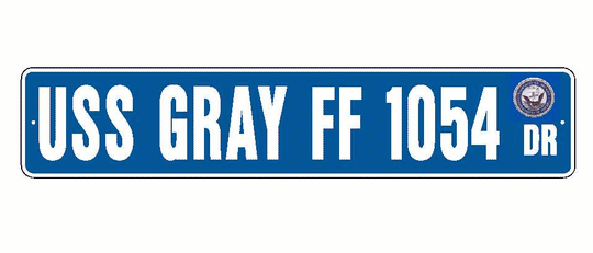 USS GRAY FF 1054 Aluminum Street Sign Blue / White 6" x 30" Military USN SS001