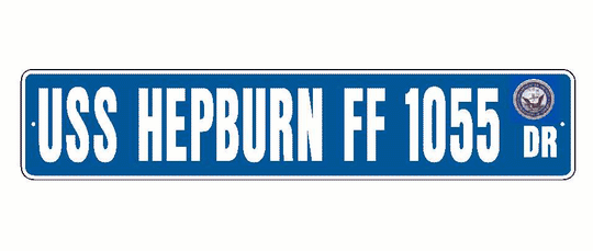 USS HEPBURN FF 1055 Aluminum Street Sign Blue / White 6" x 30" Military USN SS001