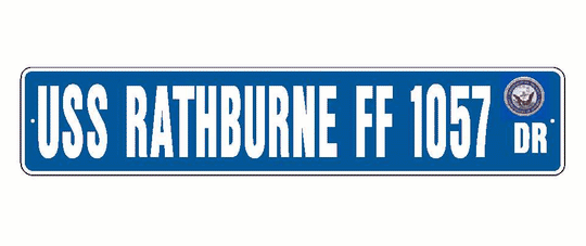USS RATHBURNE FF 1057 Aluminum Street Sign Blue / White 6" x 30" Military USN SS001