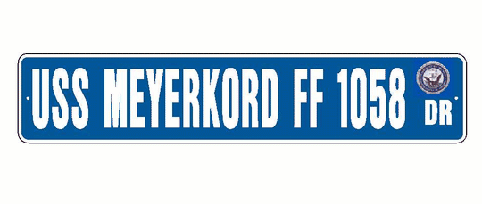 USS MEYERKORD FF 1058 Aluminum Street Sign Blue / White 6" x 30" Military USN SS001