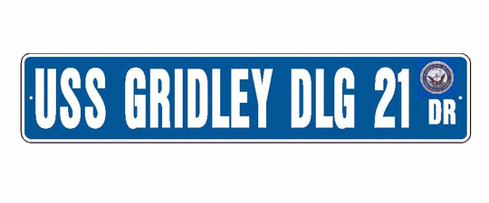 USS GRIDLEY DLG 21 Aluminum Street Sign Blue / White 6" x 30" Military USN SS001