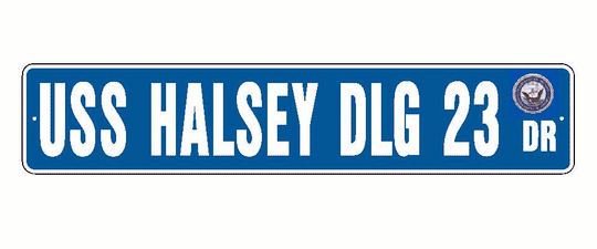 USS HALSEY DLG 23 Aluminum Street Sign Blue / White 6" x 30" Military USN SS001