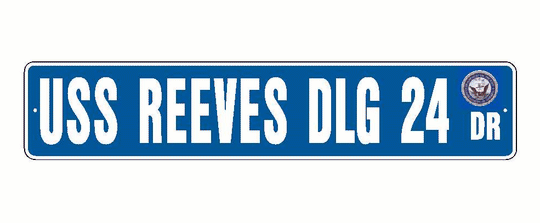 USS REEVES DLG 24 Aluminum Street Sign Blue / White 6" x 30" Military USN SS001