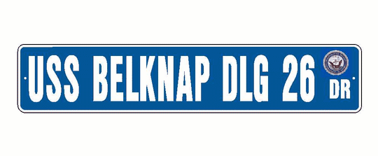 USS BELKNAP DLG 26 Aluminum Street Sign Blue / White 6" x 30" Military USN SS001