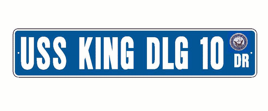 USS KING DLG 10 Aluminum Street Sign Blue / White 6" x 30" Military USN SS001