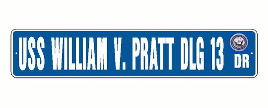 USS WILLIAM V PRATT DLG 13 Aluminum Street Sign Blue / White 6" x 30" Military USN SS001