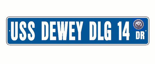 USS DEWEY DLG 14 Aluminum Street Sign Blue / White 6" x 30" Military USN SS001