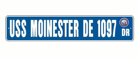 USS MOINESTER DE 1097 Aluminum Street Sign Blue / White 6" x 30" Military USN SS001