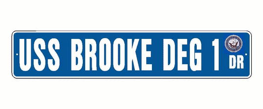 USS BROOKE DEG 1 Aluminum Street Sign Blue / White 6" x 30" Military USN SS001