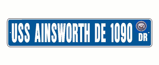 USS AINSWORTH DE 1090 Aluminum Street Sign Blue / White 6" x 30" Military USN SS001