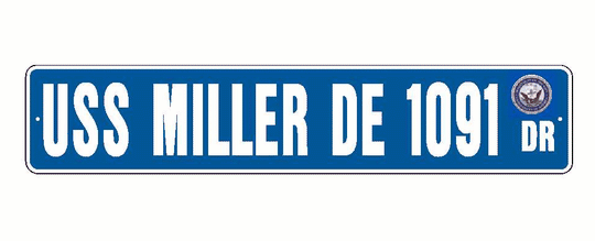 USS MILLER DE 1091 Aluminum Street Sign Blue / White 6" x 30" Military USN SS001