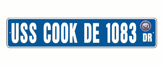 USS COOK DE 1083 Aluminum Street Sign Blue / White 6" x 30" Military USN SS001