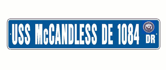 USS McCANDELS DE 1084 Aluminum Street Sign Blue / White 6" x 30" Military USN SS001
