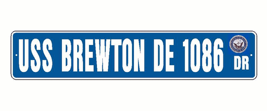 USS BREWTON DE 1086 Aluminum Street Sign Blue / White 6" x 30" Military USN SS001