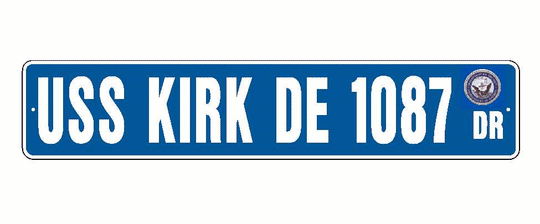 USS KIRK DE 1087 Aluminum Street Sign Blue / White 6" x 30" Military USN SS001