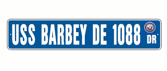 USS BARBEY DE 1088 Aluminum Street Sign Blue / White 6" x 30" Military USN SS001