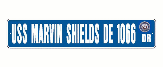 USS MARVIN SHIELDS DE 1066 Aluminum Street Sign Blue / White 6" x 30" Military USN SS001