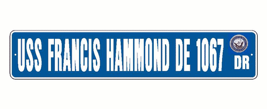 USS FRANCIS HAMMOND DE 1067 Aluminum Street Sign Blue / White 6" x 30" Military USN SS001