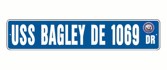 USS BAGLEY DE 1069 Aluminum Street Sign Blue / White 6" x 30" Military USN SS001