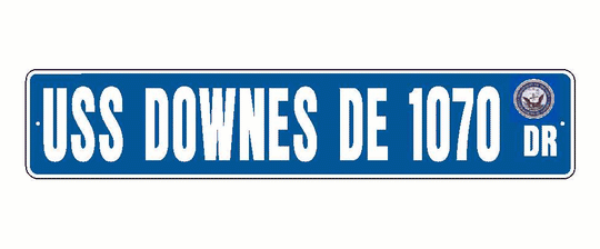 USS DOWNES DE 1070 Aluminum Street Sign Blue / White 6" x 30" Military USN SS001