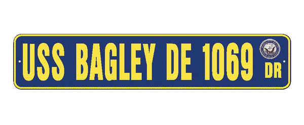 USS BAGLEY DE 1069 Aluminum Street Sign Navy Blue / Yellow 6" x 30" Military USN SS002